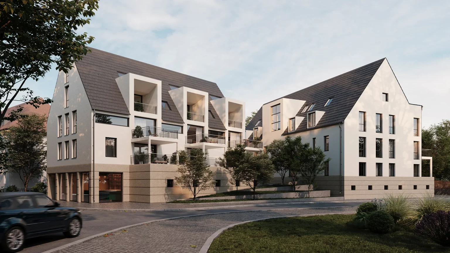 Highlights des Projekts Zwei Mehrfamilienhäuser, insgesamt 13 Wohnungen und 13 TG-Stellplätze hoher Energiestandard beste Verkehrsanbindung und dennoch ruhig gelegen durchschnittlich 65 Quadratmeter Wohnfläche Zwei- und